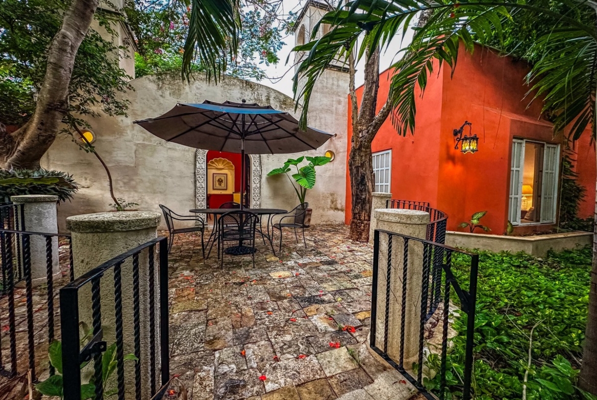 Arched doorways, terracotta-colored walls, handcrafted furniture, and ironwork add personality and charm.